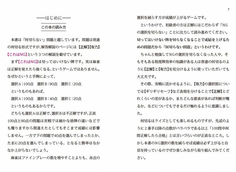 そこで「何切らない」という、少し変わった問題集を作ってみました。著者は麻雀講座系のトップYouTuberであり、最高位戦日本プロ麻雀協会のプロでもある平澤元気氏。
