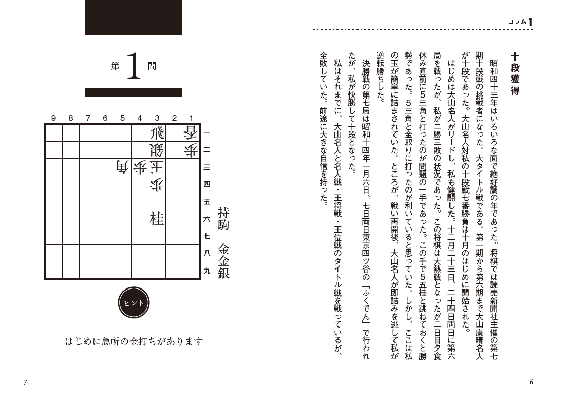 本書は家庭雑誌『家の光』(家の光協会)に1959年9月号より連載された加藤九段の詰将棋を書籍化したものとなります。(なお、本書が出版された後ですが、2024年に「同一雑誌におけるボードゲームパズル作者としての最長キャリア」としてギネス世界記録に認定されています)